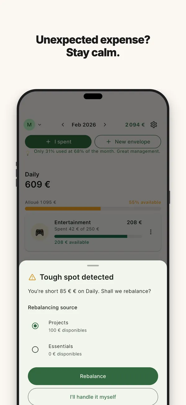 Every euro or dollar is assigned to an envelope (groceries, rent, entertainment, savings). See your remaining balance at a glance.
